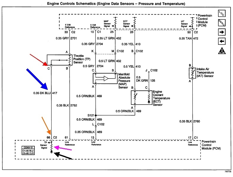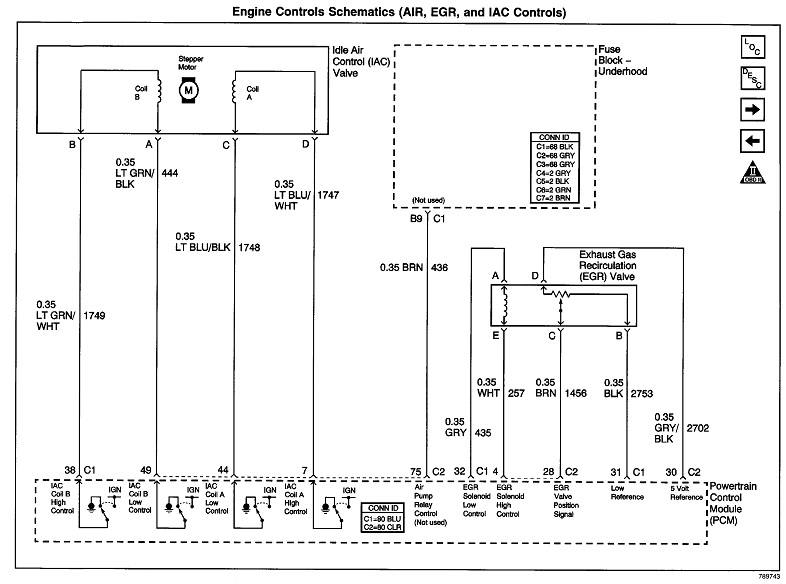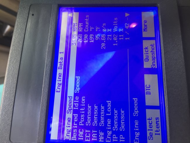 GM and Chrysler use the same idle speed motor, but while Chrysler's range goes from "0" to "256", I don't know if GM uses the same scale. If they do, your screen is showing 190 steps, which is way too high. I don't think that 8-cylinder Jeep running on only two cylinders reached that high of a step. Remember, if something such as a vacuum leak was causing your idle speed to be too high, the counts would be real low, indicating the computer was closing the idle speed motor's valve to reduce air flow. It's not doing that. Yours is showing the computer is requesting that high idle speed. That has to be in response to a sensor value or something it is seeing. Of notable interest is "engine load" of 21 percent. I don't recall seeing that on my vehicles, but it seems too high for a vehicle idling in "park". I also question the TPS voltage. I'm used to seeing around 0.6 to maybe 0.7 volts at closed throttle. Remember my story of the TPS that latched in various positions? With the engine running, the only fairly constant symptom was idle speed just high enough to get my attention, . . . perhaps 1,000 rpm. That's when I noticed the TPS was at around 2.6 volts, or incorrectly telling the computer "half throttle".