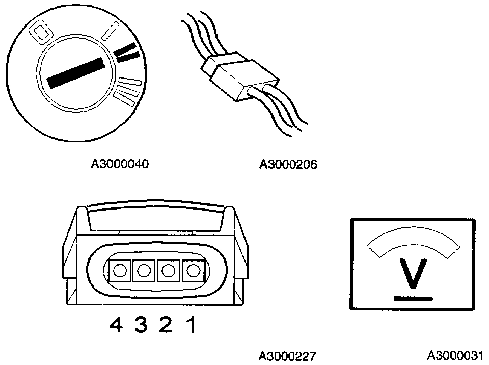 - Connect a voltmeter between mass air flow (MAF) sensor connector terminals 2 and 4.