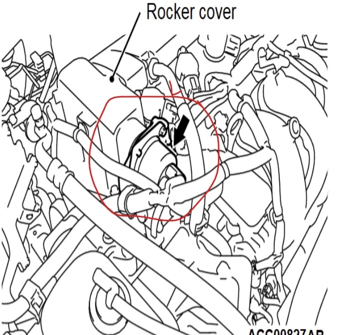 Mitsubishi used two different 2.4 engines in that vehicle year. One is a single overhead cam with a very unique VVT system on that engine. Unlike the typical method of just using a phaser they used a motor on a rockshaft as well. There is the single cam position sensor on the end of the rocker housing below the oil filler cap which is controlled through a single oil flow solenoid that moves the camshaft phaser, they also used a valve lift control motor that was part of the carrier assembly (14 in the picture) and it was adjustable via the motor on the opposite end of the rocker cover. That has its sensor built into the motor.