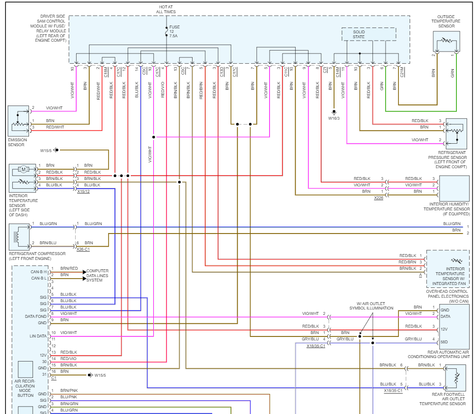 Maybe you could help and provide a wiring diagram for A/C control in engine bay or front SAM.