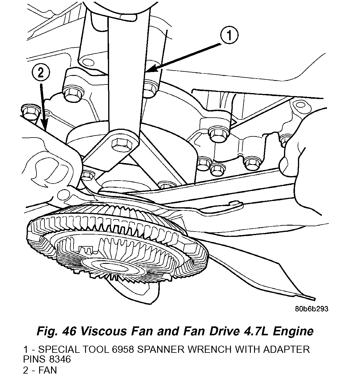 3. Remove fan/viscous fan drive assembly from water pump. Do not attempt to remove fan/viscous fan drive assembly from vehicle at this time.