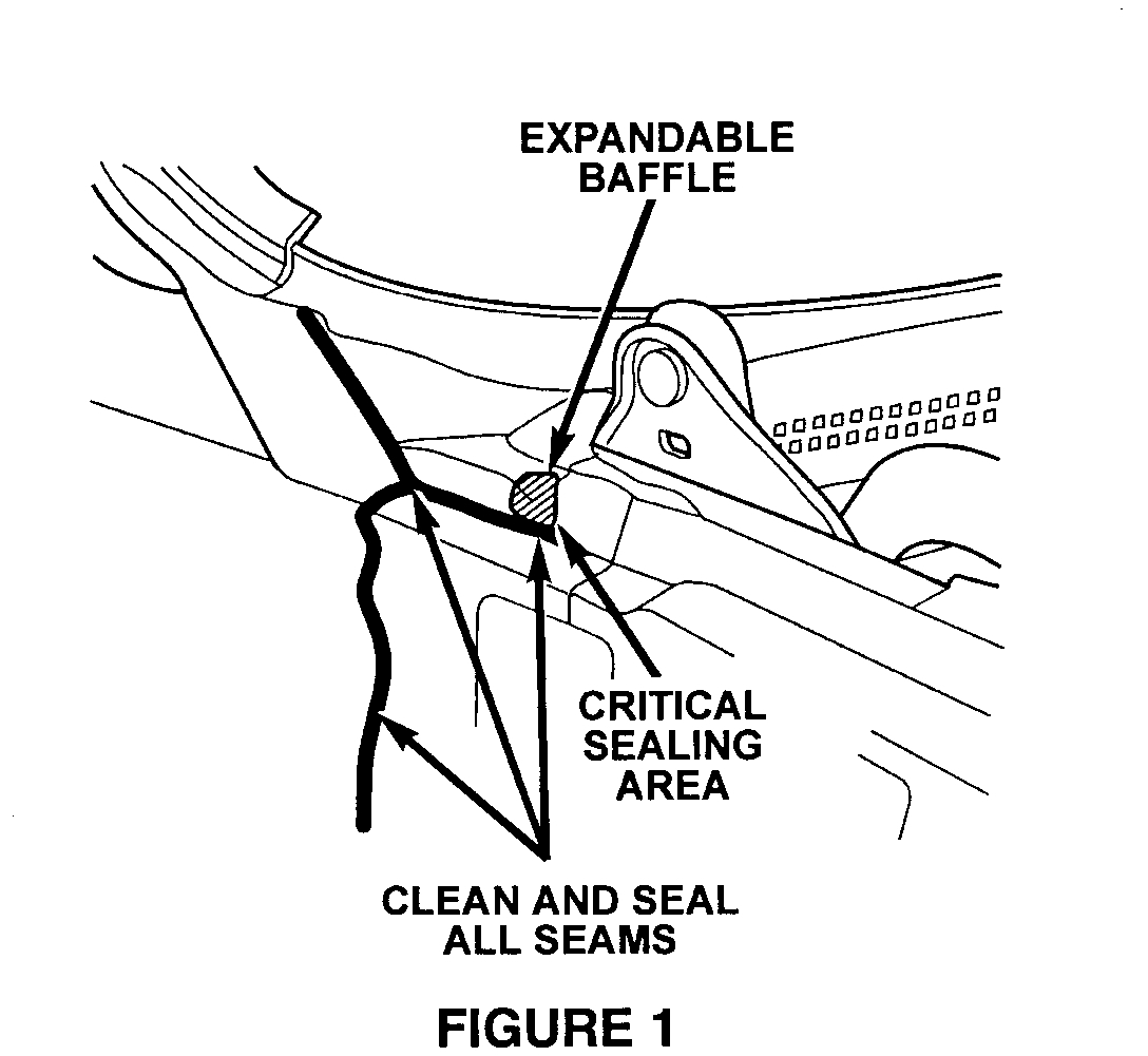 10. Inspect the A-pillar/cowl load beam body seams (Figure 1). Remove any excess/squeezed out, over expanded, body sealer material from the seams. Clean area with Mopar Super Clean, p/n 04318015, or equivalent.