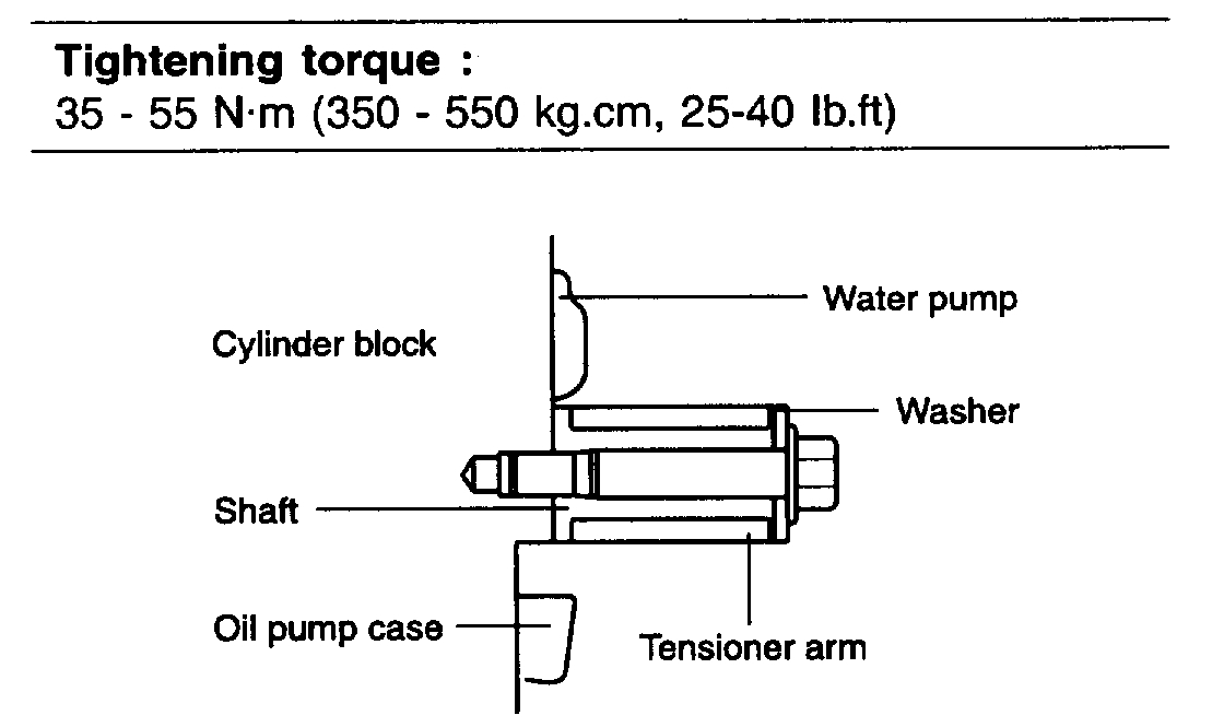 2. Install tensioner arm, shaft and plane washer to cylinder block.