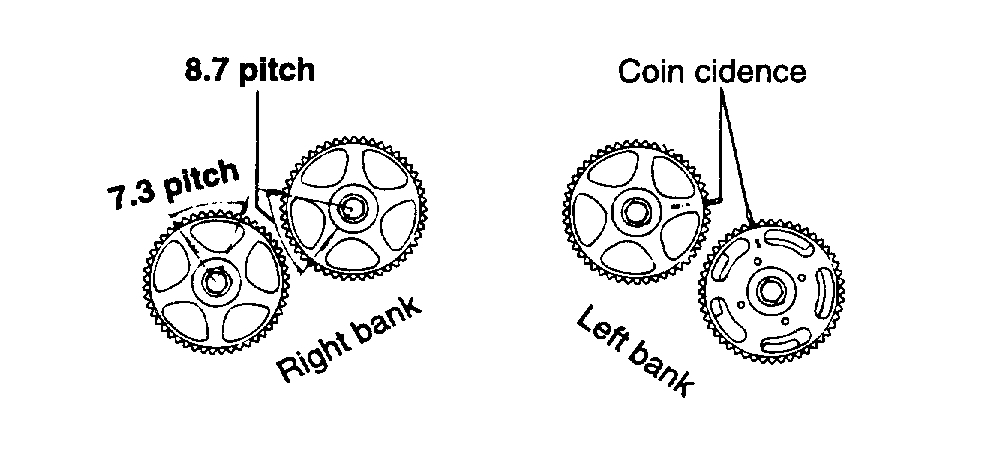 4. Install camshaft sprocket and adjust initial installation state as illustration.