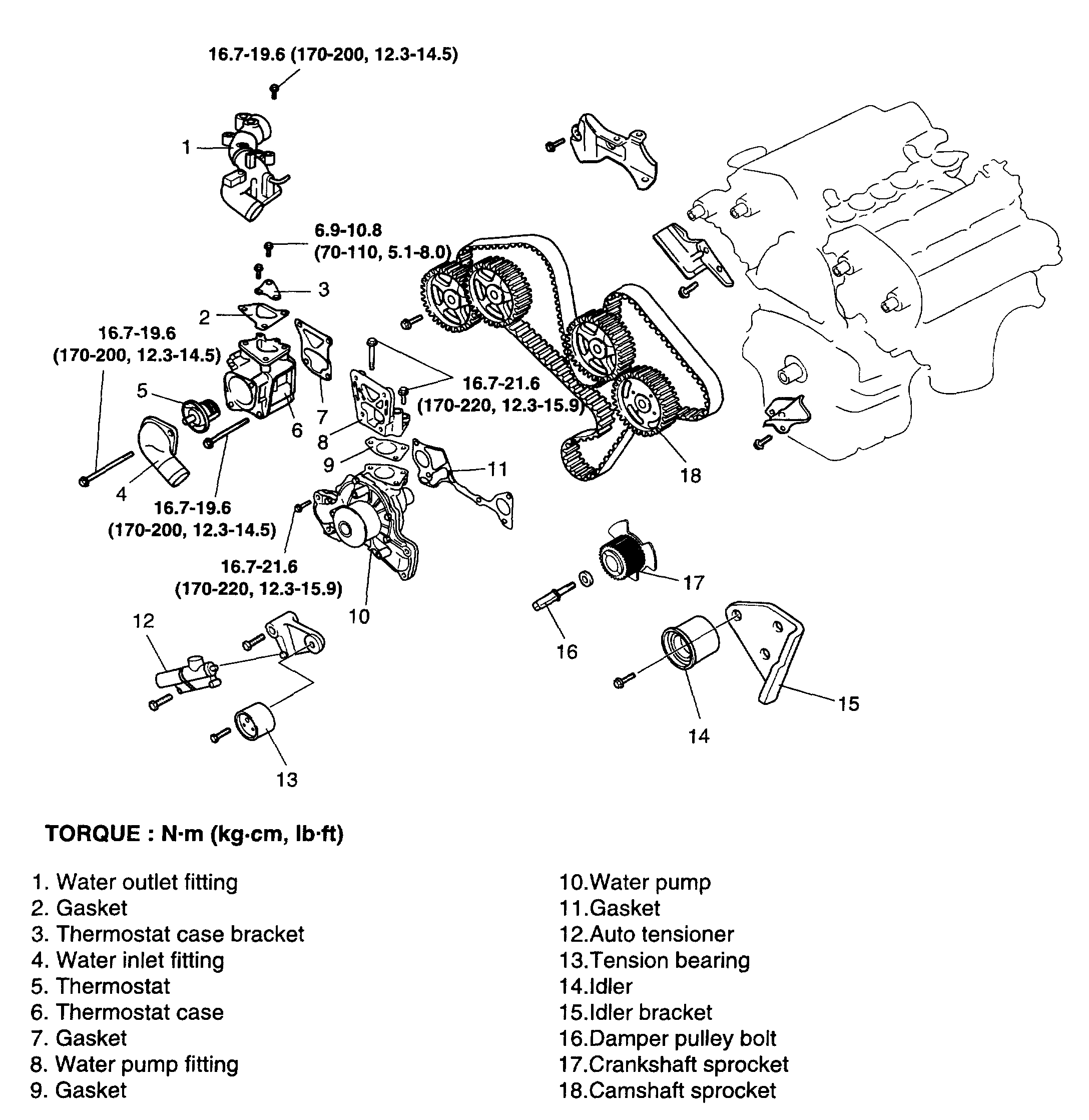 5. Install the drive belt, coolant pump pulley and then adjust the auto tensioner.