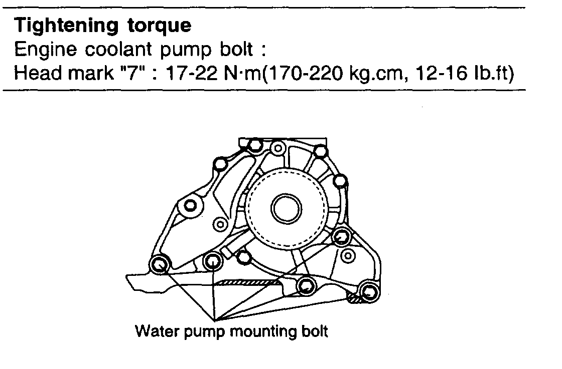 Head mark "7": 17 - 22 Nm (170 - 220 kg-cm, 12 - 16 ft. lbs.)