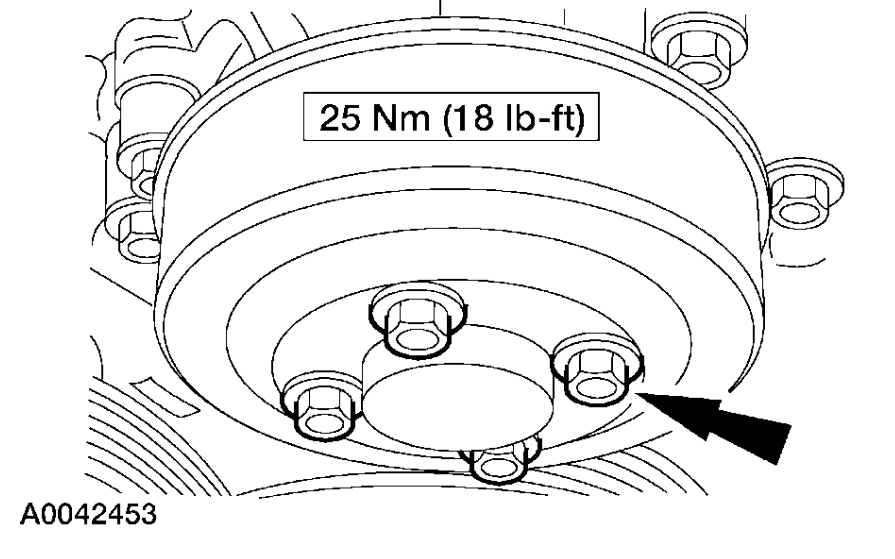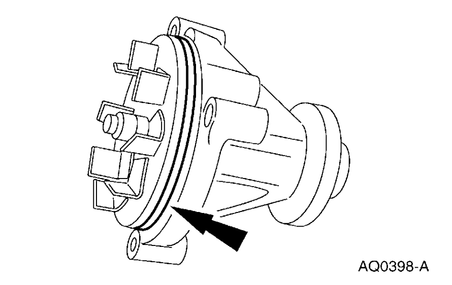 6. CAUTION: Do not rotate the coolant pump housing once installed in the engine. Damage to the O-ring seal can occur, causing the coolant pump to leak.