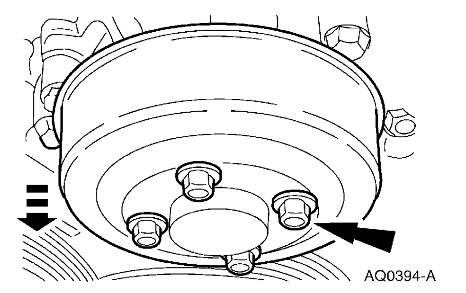 2. Loosen the coolant pump pulley bolts.