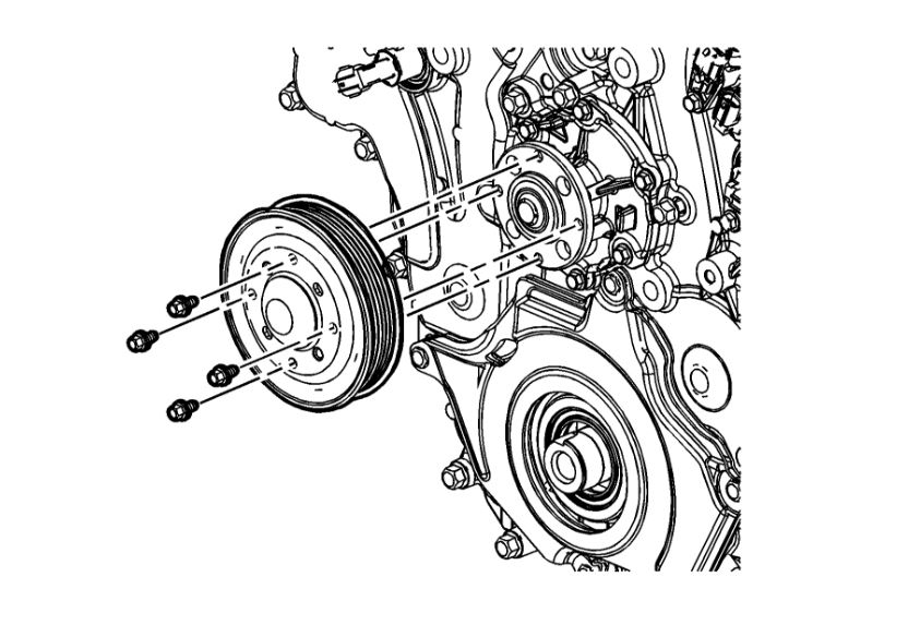 2. Remove the water pump pulley bolts.