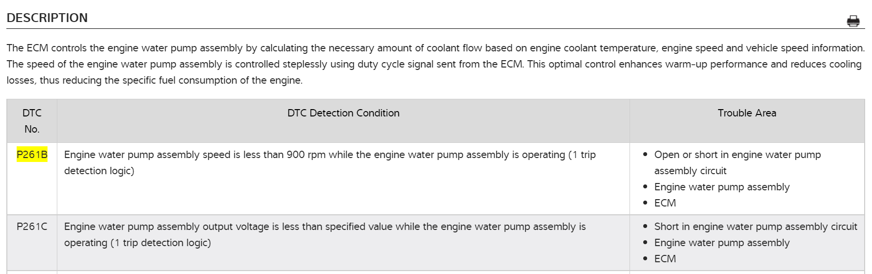 Hello, these codes can be set if you are losing coolant due to a leak or possibly a head gasket issue. The first code (P261b) can sometimes be taken care of by properly bleeding the coolant system, so if you're low on coolant it can set both of these codes. So, the real issue to begin with is finding out where the coolant leak is. That is probably the overall cause of these codes. The P261b is the ECM detecting the coolant pump below 900 RPMs so the code trouble area is labelled as 1. Open or Short circuit in engine water pump assembly circuit. 2. Engine water pump assembly 3. ECM issue,