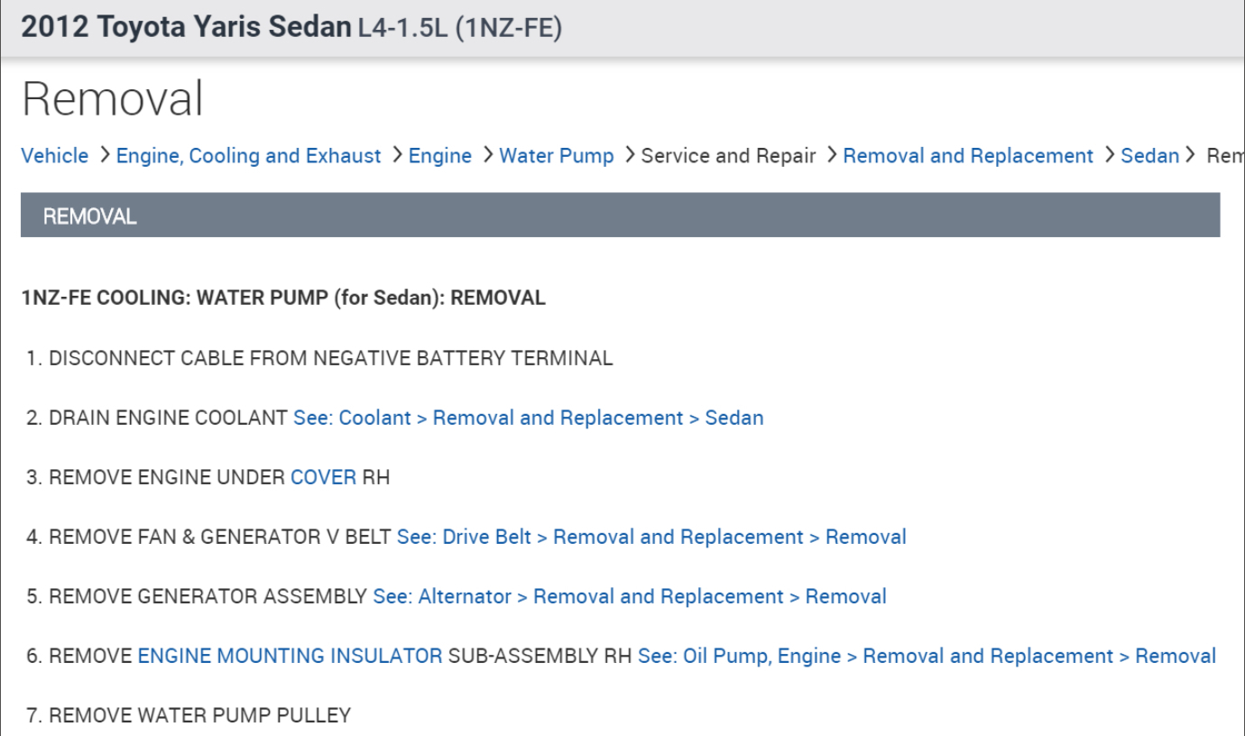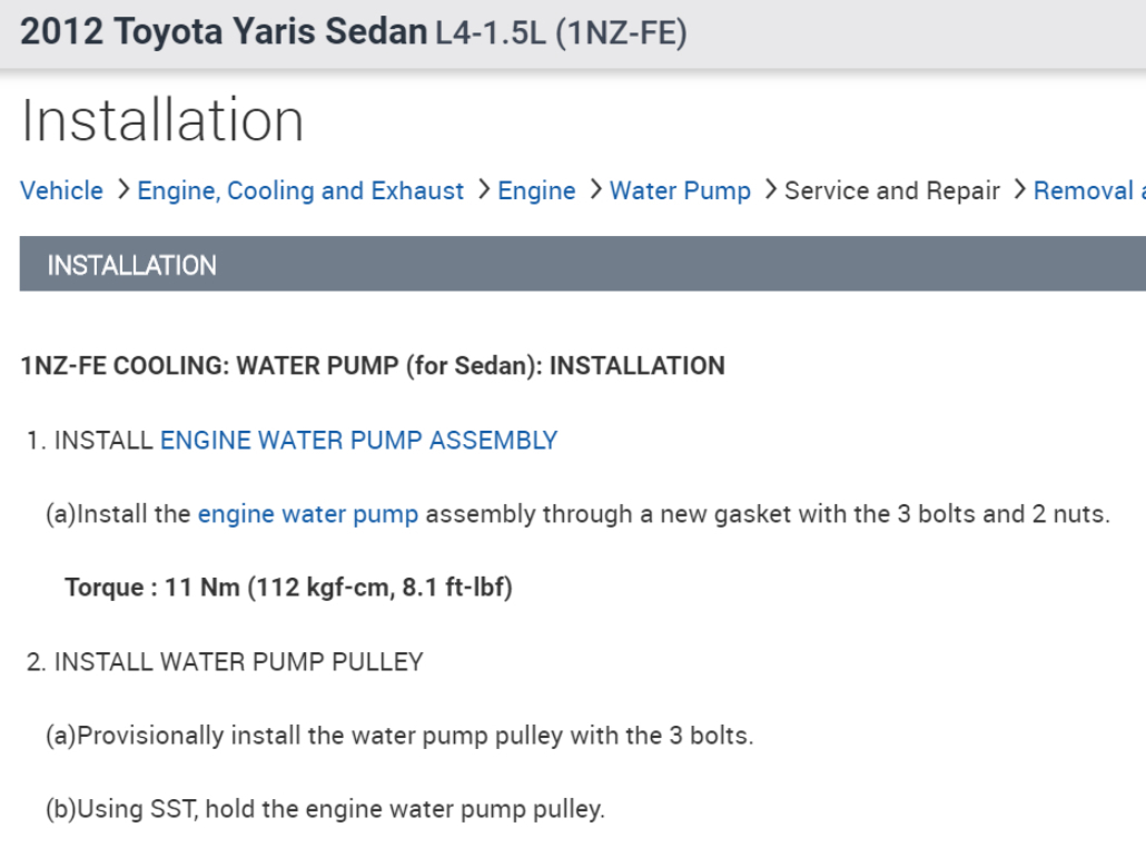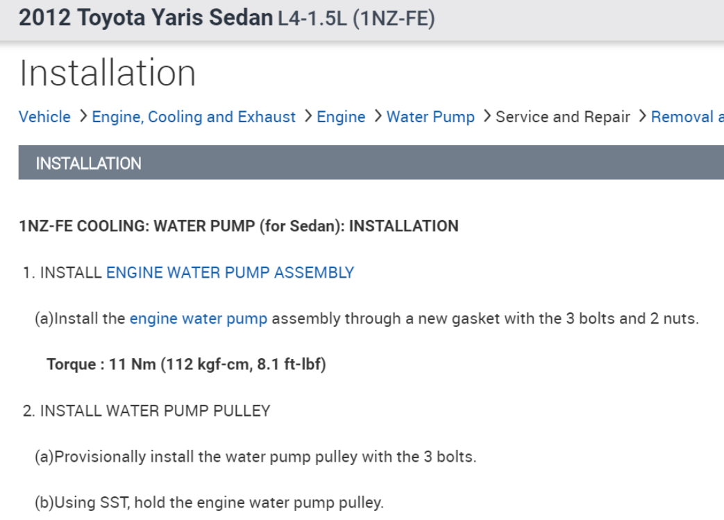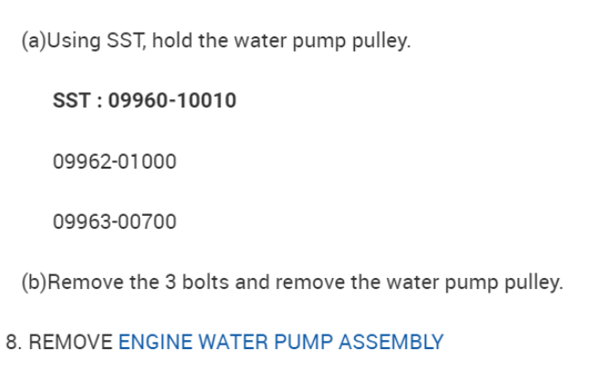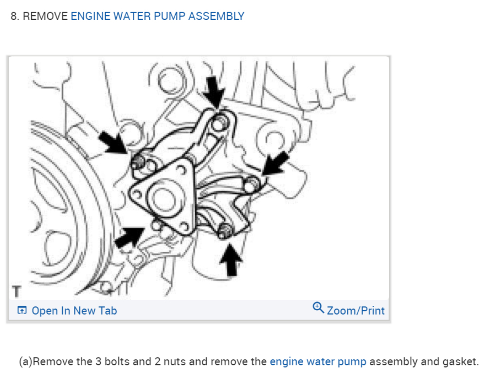 Down below in the diagrams I have posted the instructions for removal, as well as installation of your vehicles water pump, as well as the fluid recommendation and capacity.