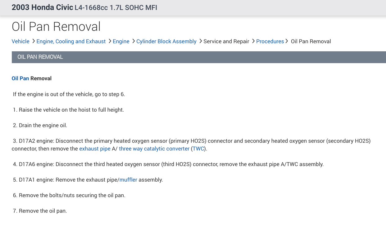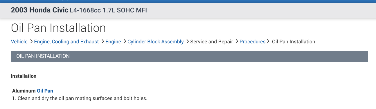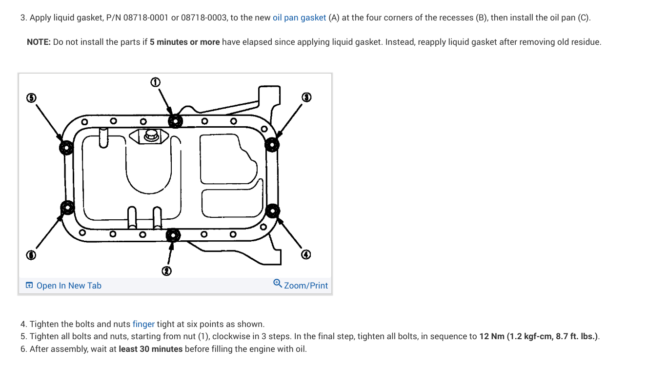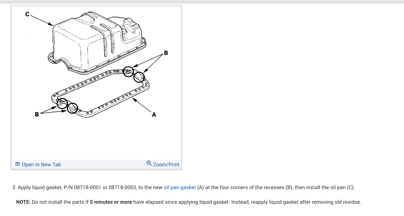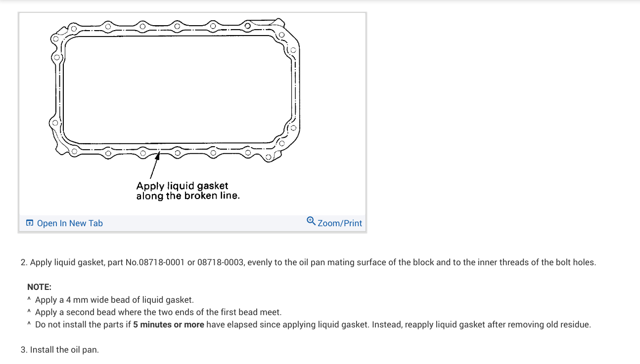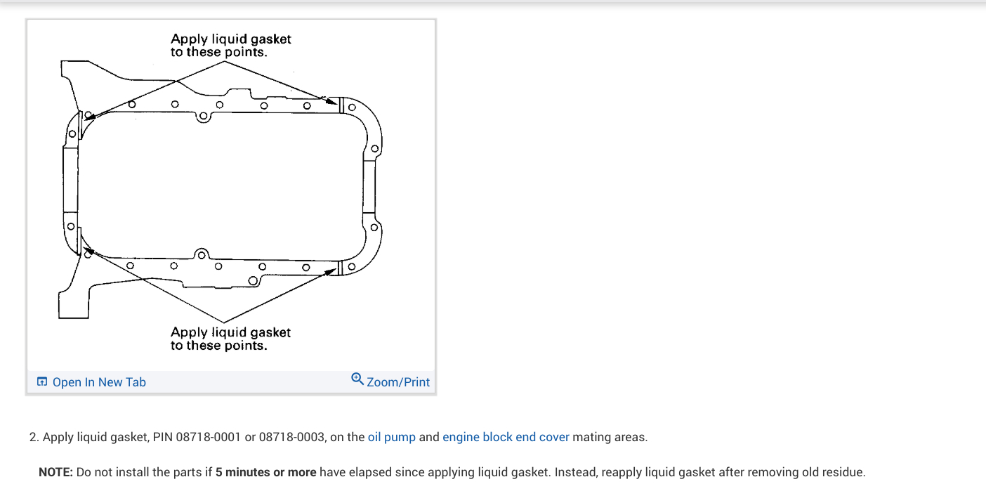 Okay, so that's not a terribly hard gasket to get to, it's the oil pan gasket, which is one of the more common gaskets to fail, so no worries there. In the diagrams down below I have included the instructions for the removal and installation of your vehicle's oil pan. The instructions don't have a pre-made gasket, and call for the use of liquid gasket. I recommend that you use a product made by Permatex called "The Right Stuff". It's a little more expensive, but worth it. Please go through these guides and get back to us with how everything turns out.