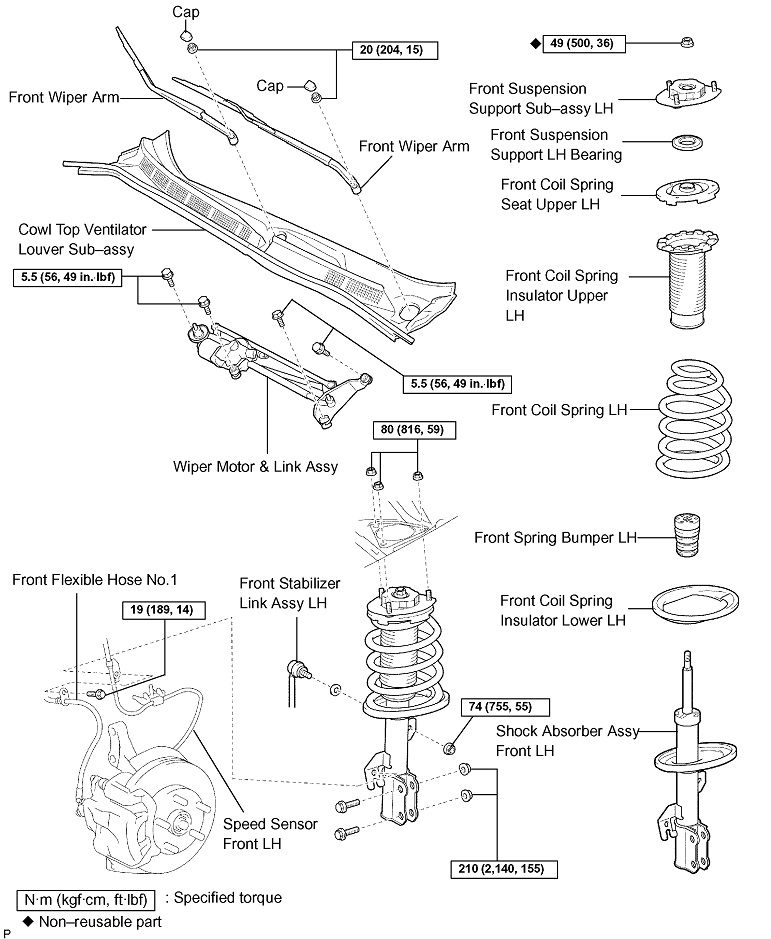 ^ Do not loosen the nut except for the purpose of disassembling the shock absorber assy front LH with coil spring.