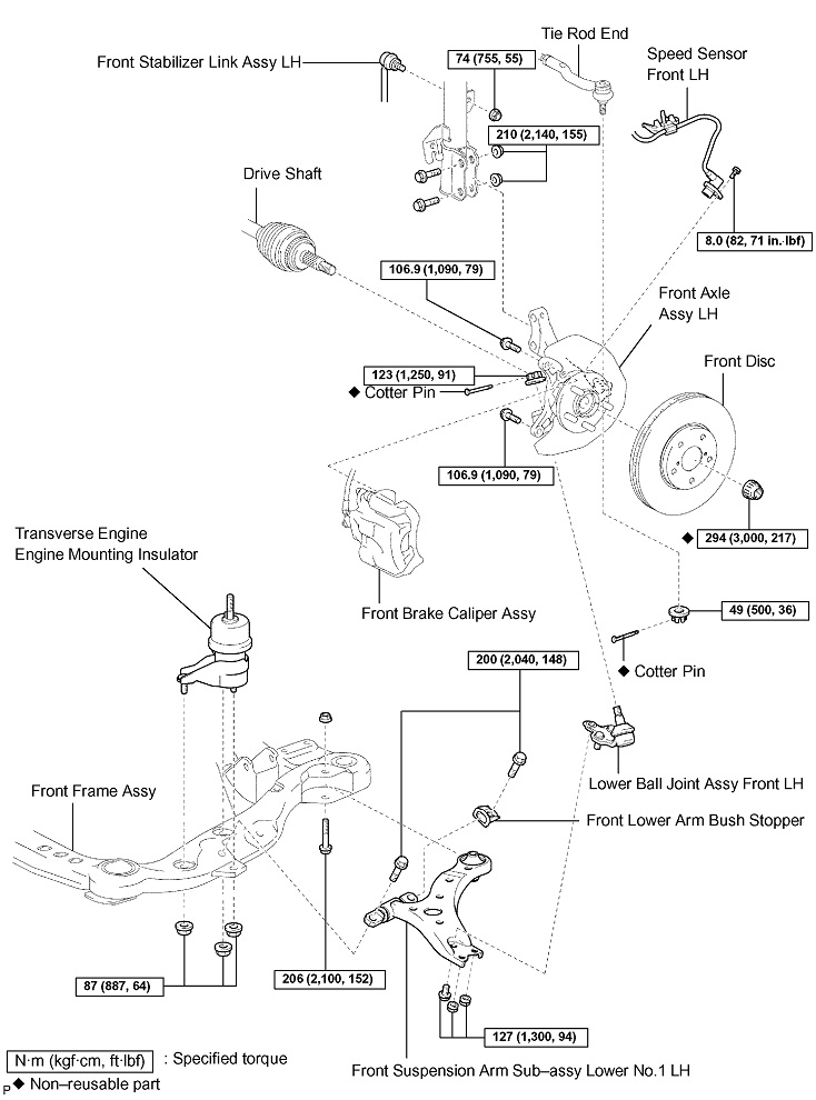 Torque: 210 Nm (2,140 kgf-cm, 155 ft. lbs.)
