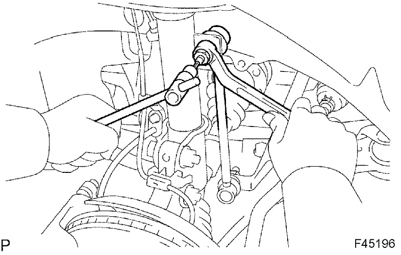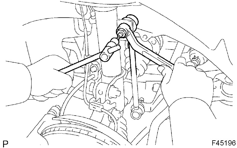 HINT: If the ball joint turns together with the nut, use a hexagon (6 mm) wrench to hold the stud.