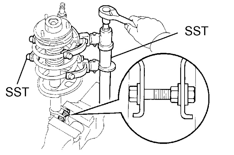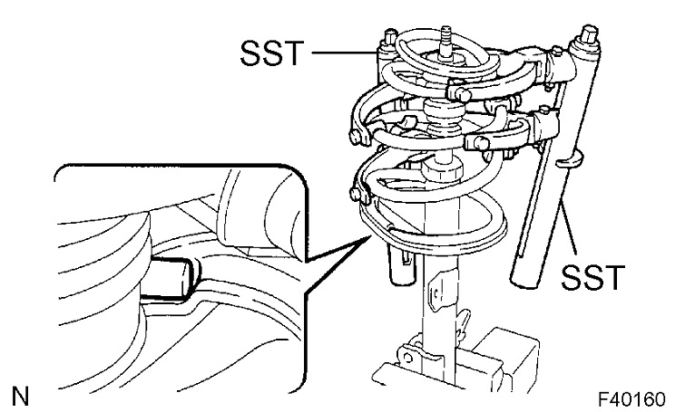 a. Using SST, compress the front coil spring LH.