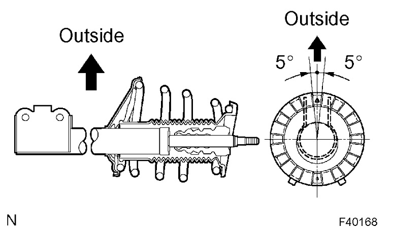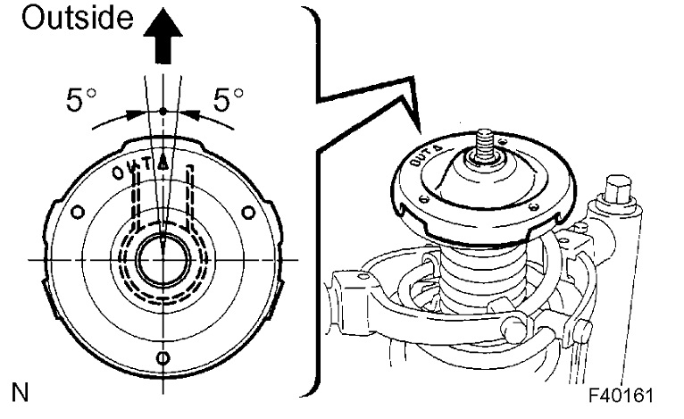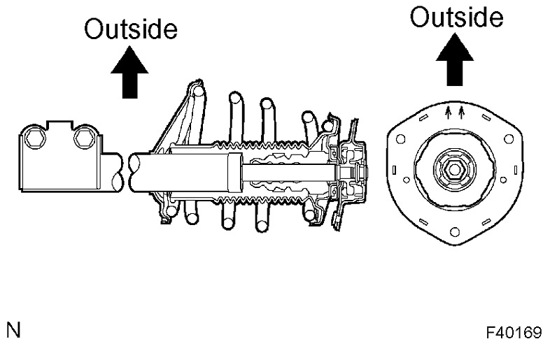 a. Install the front coil spring seat upper LH to the shock absorber assy front LH with the mark facing to the outside of the vehicle.