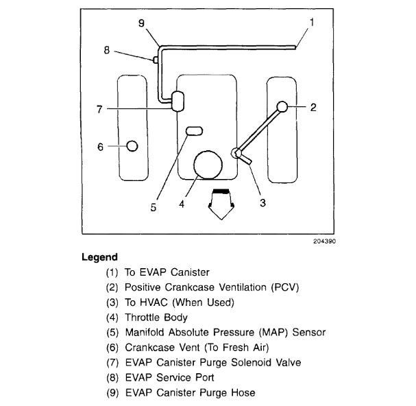 Here is the three way value I was talking about. The long line to the left connects to the manifold not really sure where the one short one was, it was like that when I bought it. And the one to the right goes down and wraps into the electrical wires harness but do not know where it comes out at.