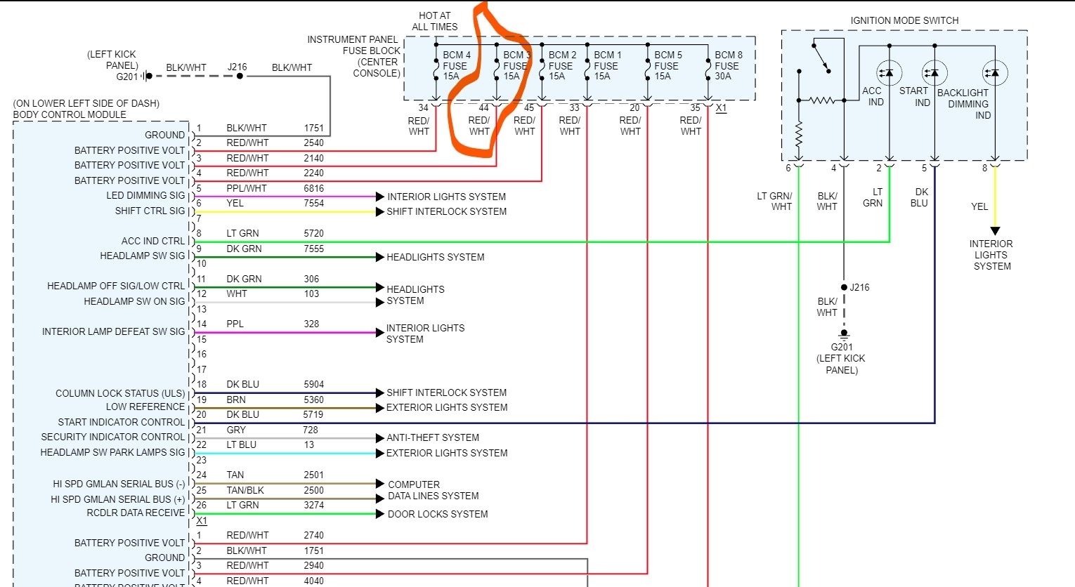 Check engine light came on. Plugged in my obd2 scanner and there was no power to the socket. In the process of finding the blown fuse for the diagnostic port i pulled out the fuse for the BCM#3.