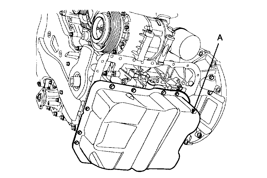 3) Install oil pan (A). Uniformly tighten the bolts in several passes.