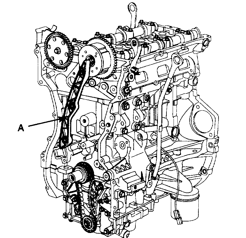 26. Remove the timing chain guide (A).
