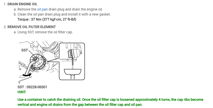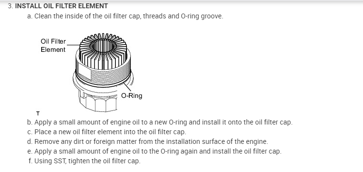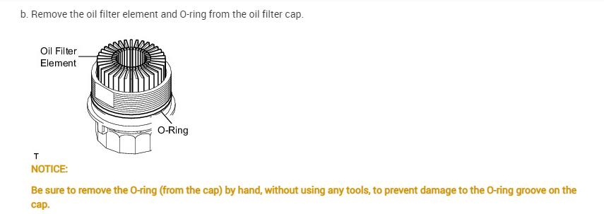 The remaining pics are the directions for the procedure. When you install the new O-ring on the oil filter cap, make sure to lubricate it with motor oil before installing it.