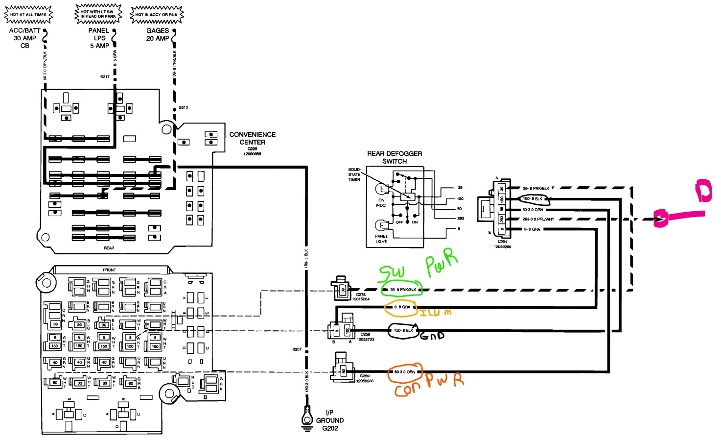 I bought a new radio, and it don't support the rear defogger so I need the colors for the 2 wires that controls the rear defogger so I can put in a tigger switch for it.
