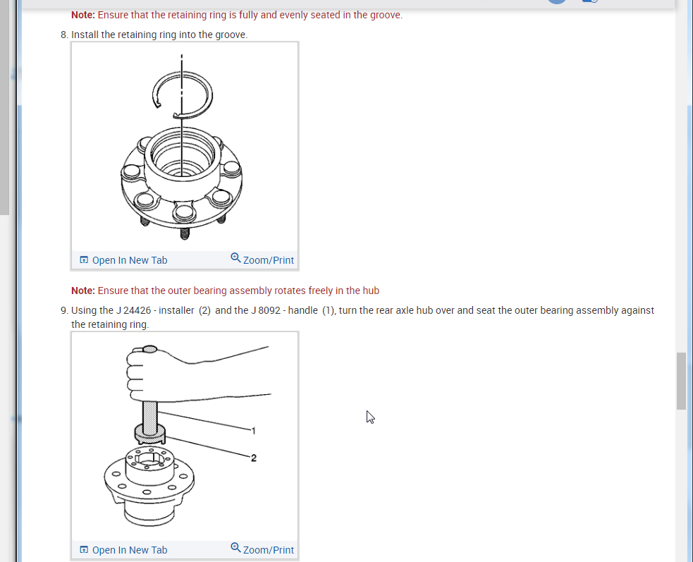 I am attaching the complete process on the rear bearing and hub assembly. Can you review this and let us know what step you are hung up on? I assume it is number 8 on the assembly and it is then I assume the bearing cup is not installed far enough.