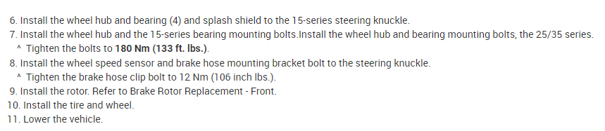Without all info had to guess so here is 10.5 Suspect installation may have damaged bearing also 115 ft. lbs. torque on hub.