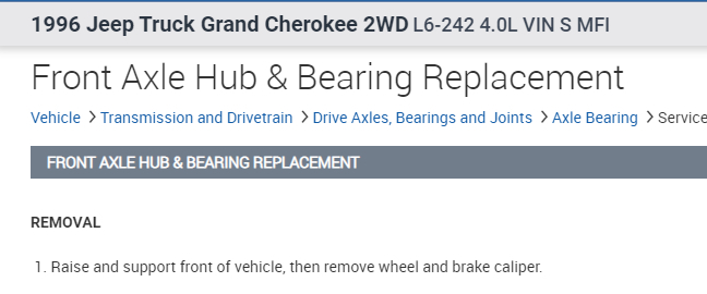 Since this is a 2wd vehicle, you will be working with the bearings and not a hub assembly. The hub assembly on your vehicle is integral to the brake rotor. Anytime you say Jeep, everyone assumes it's 4wd.