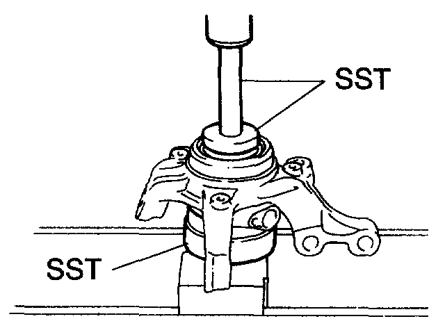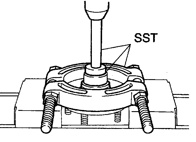 b. Using SST and a press, press the bearing until it contacts with the SST.