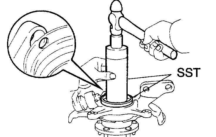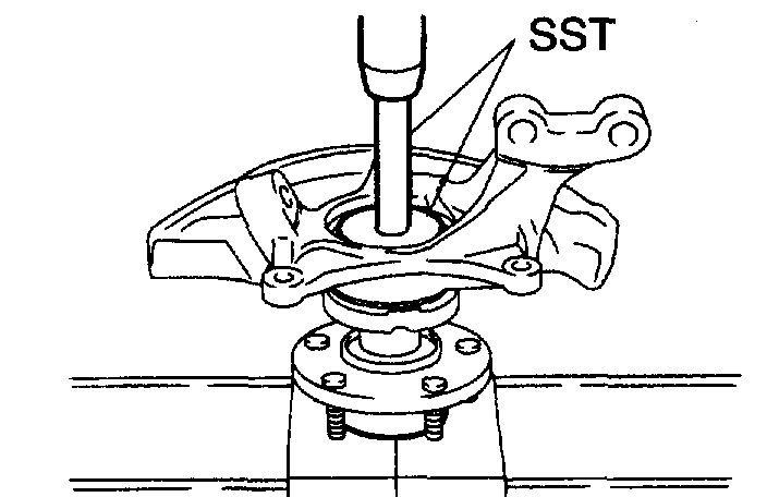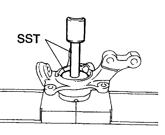 a. Using SST and a press, install a new bearing to the steering knuckle.