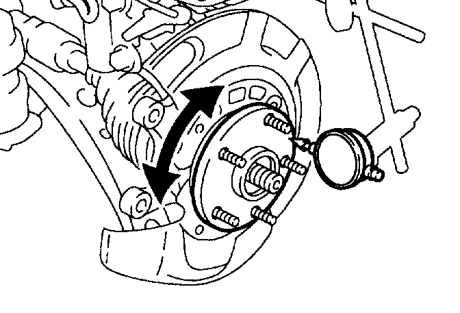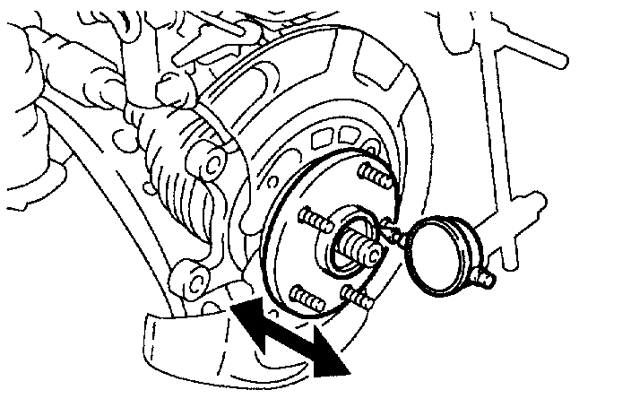 a. Using a dial indicator, check the deviation at the surface of the axle hub outside the hub bolt.