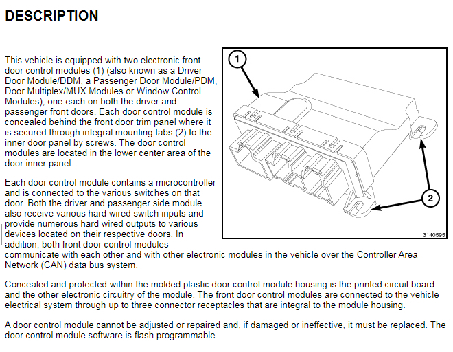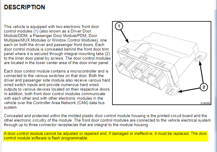 If so, then there is nothing to worry about. As for programming a 2011 vs a 2013, this is no different. I am not sure where you are getting your info but I am not sure it is accurate. If you look at the info provided, the door modules are NOT programmed once they are flashed. So that means you install the door module in the vehicle and then you flash it with the software for that specific vehicle which tells the module how it is equipped. Once this is done, it does not have to be flashed again. However, if you install this in a vehicle that is not equipped the same then it may not function properly. However, as long as they are the same part number this will not be an issue because all the DDM is control the window operation.
