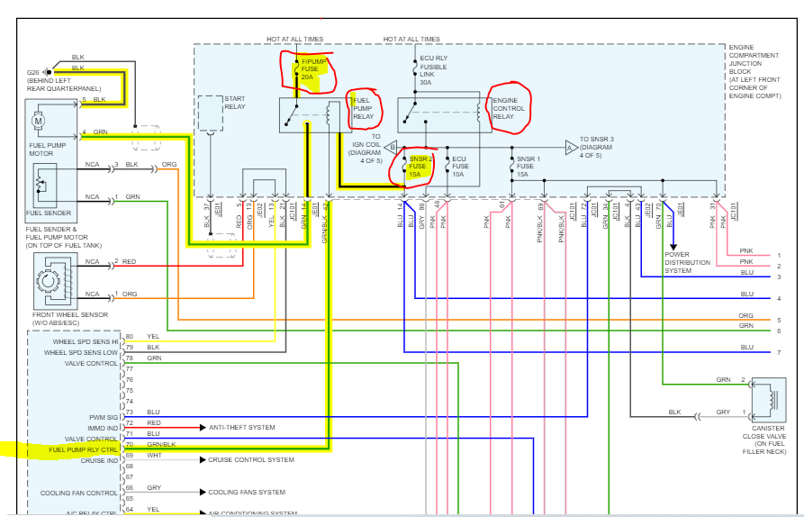 Loss of power bugging down. I replaced plugs coils even ignition coil assembly condenser capacitor. checked fuses got it started last, oh both cam sensors and crank sensor replaced .now fuel pump isn't working wtf else could ot be?