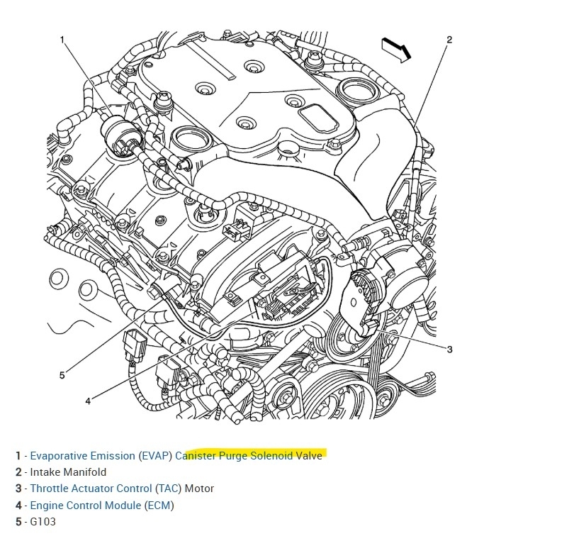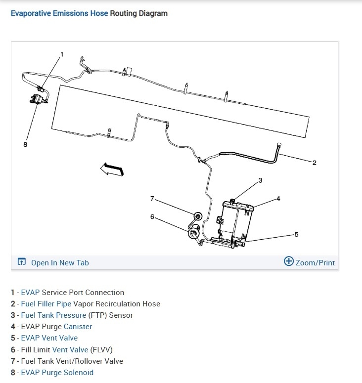 You'll notice where the Charcoal Canister is related to the spare tire well, so it's going to be located near the spare tire well but underneath the vehicle. The Canister Vent Valve is back with the Canister, but the Evap Purge valve is in the engine compartment (diagram 6). So, if you are getting a certain code setting, that would help with diagnosing the issue.
