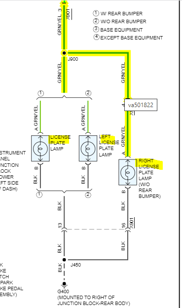 The power to the license plate lights is provided via the body control module and not directly from a fuse.
