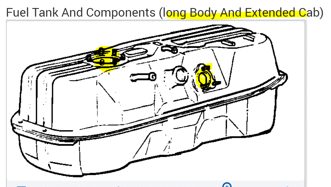 I didn't realize it was you. LOL From what I am reading, there are two separate locations for the fuel level sender. If you look at the pics below, the first shows the tank for a standard cab and the second for an extended cab.