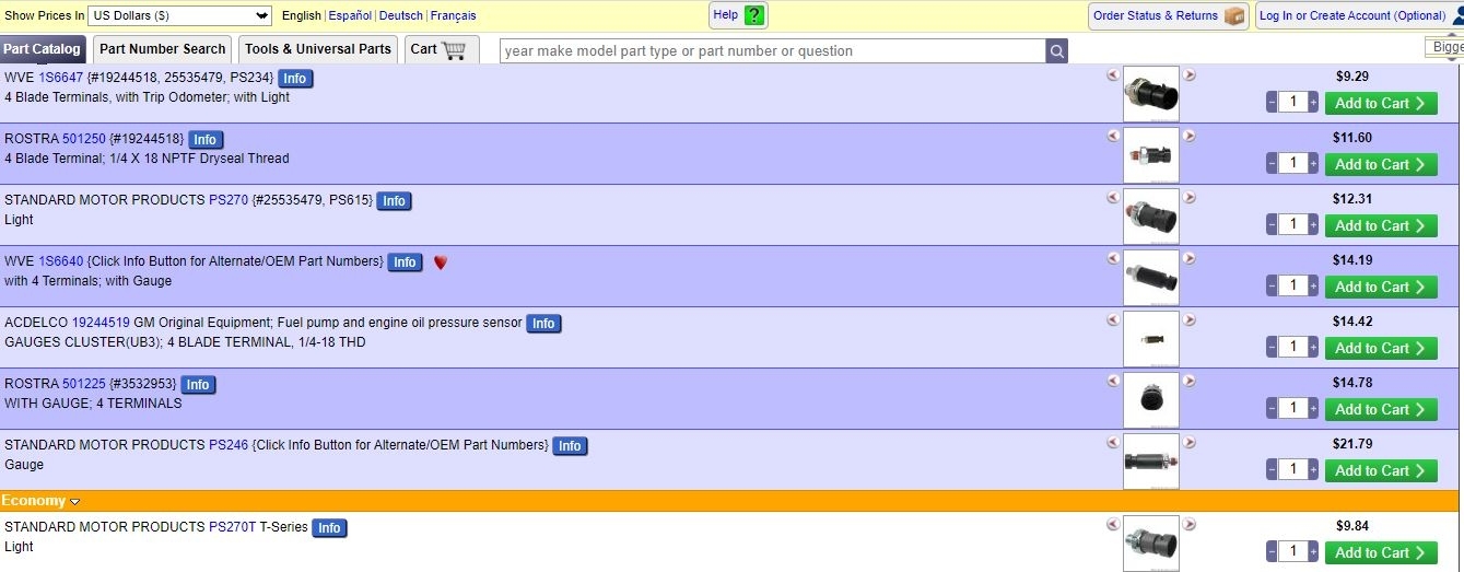 I need to change my oil pressure sensor... Went to RockAuto, they have GM 19244518 and 19244519 sensor... Which one is the good one? On Google they say it's the second option but they also said UB3 cluster option?! I'm lost
