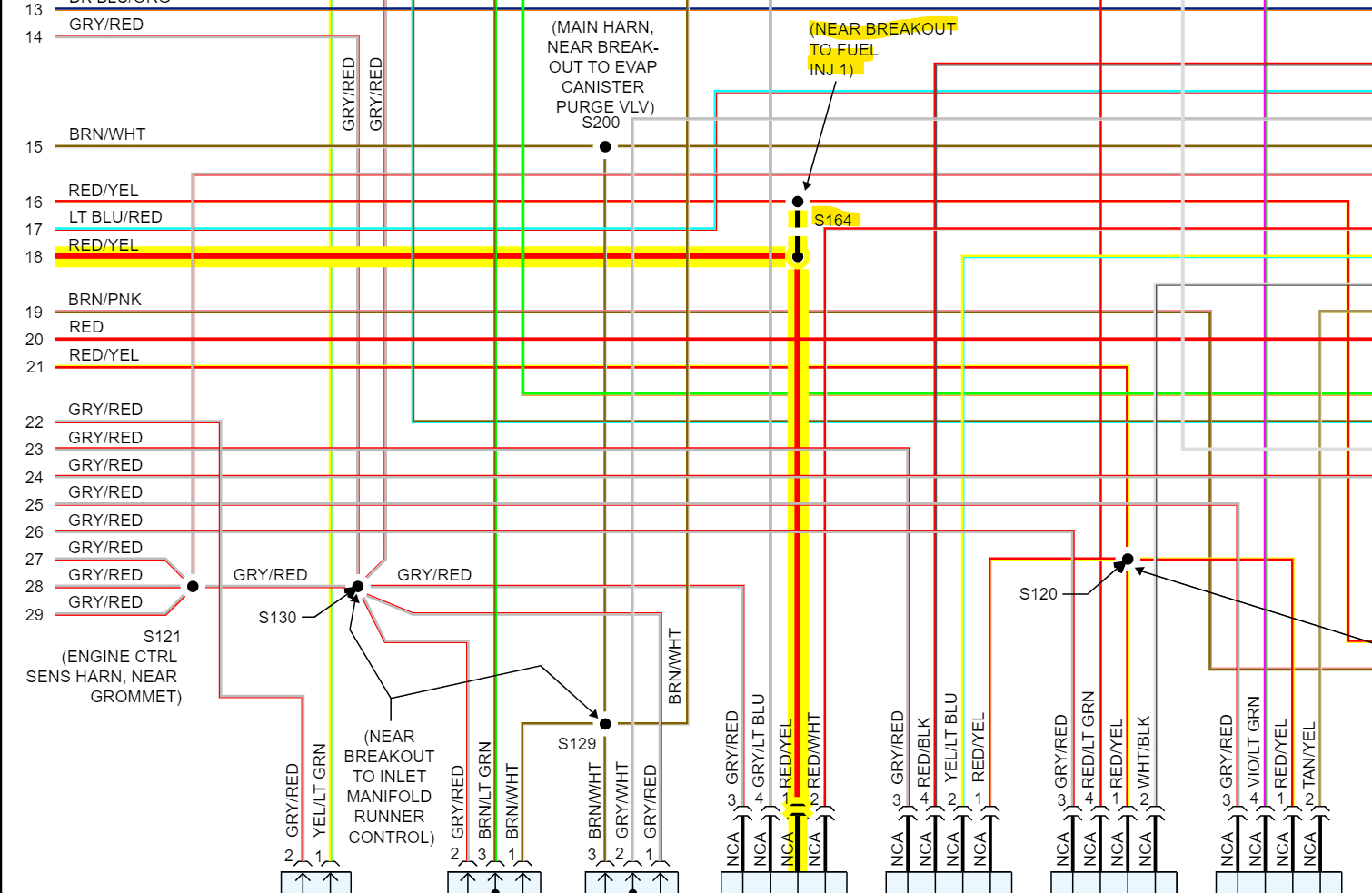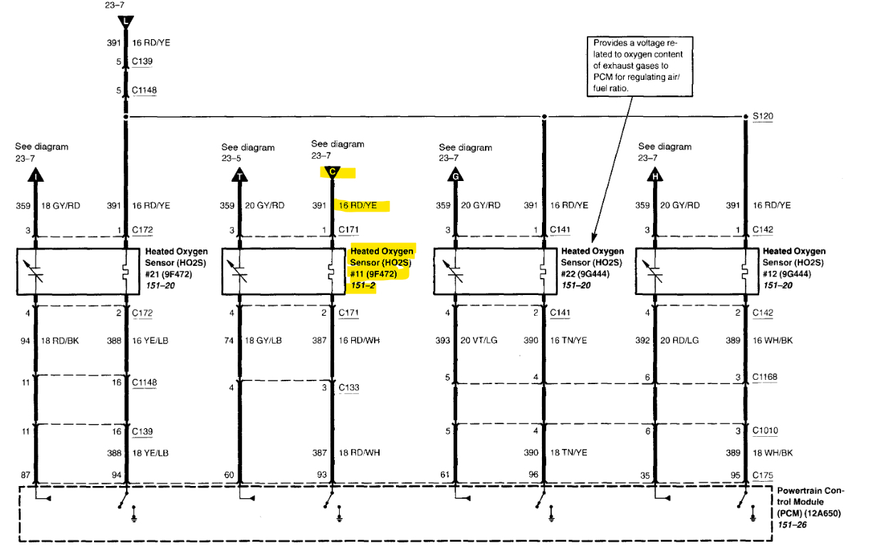 Are you getting any other codes at all? It looks like Bank 1 Sensor 1 is the only one out of the 4 that gets it heater circuit power feed from a different Splice location, you can see in the 1st diagram, the Splice S164 is near the number 1 Fuel Injector, but verify that there is 12volts coming to the B1 S1 heater circuit. Now most of these are PWM (Pulse width modulated on the Ground side,) so the ECM will pulse the ground side of the heater circuit to control it. I have seen some of them intentionally shut down the heater circuit if there is a circuit fault. For example, I had a vehicle with a open circuit inside the oxygen sensor heater and after I would erase the code the ECM would start to pulse the ground side again until it detected the fault, and 10.6 seconds after it would shut down the heater circuit to protect the ECM driver from too much current flow. But since you are not seeing any codes (and Fords sometimes take forever to set codes, sometimes they won't at all). But verify that there is power on that 02 sensors wires, it looks like they are Red/Yellow and Red/White. Usually at the 02 connector the heater circuit is the 2 wires that are the same color.