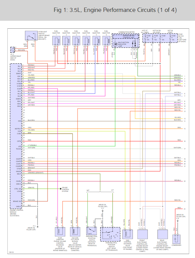 Here are the engine wiring diagrams so you can see how the system works and which fuses to check with the fuse panels location and identification.