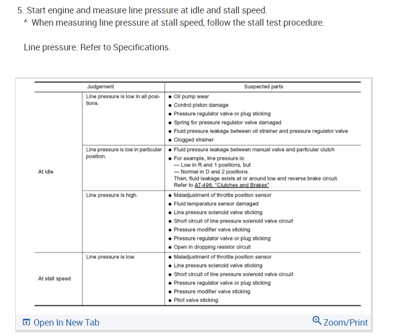 I attached the procedure for checking the line pressure to see if the system can engage. You will need a pressure gauge for this test. You can rent this at a parts store.