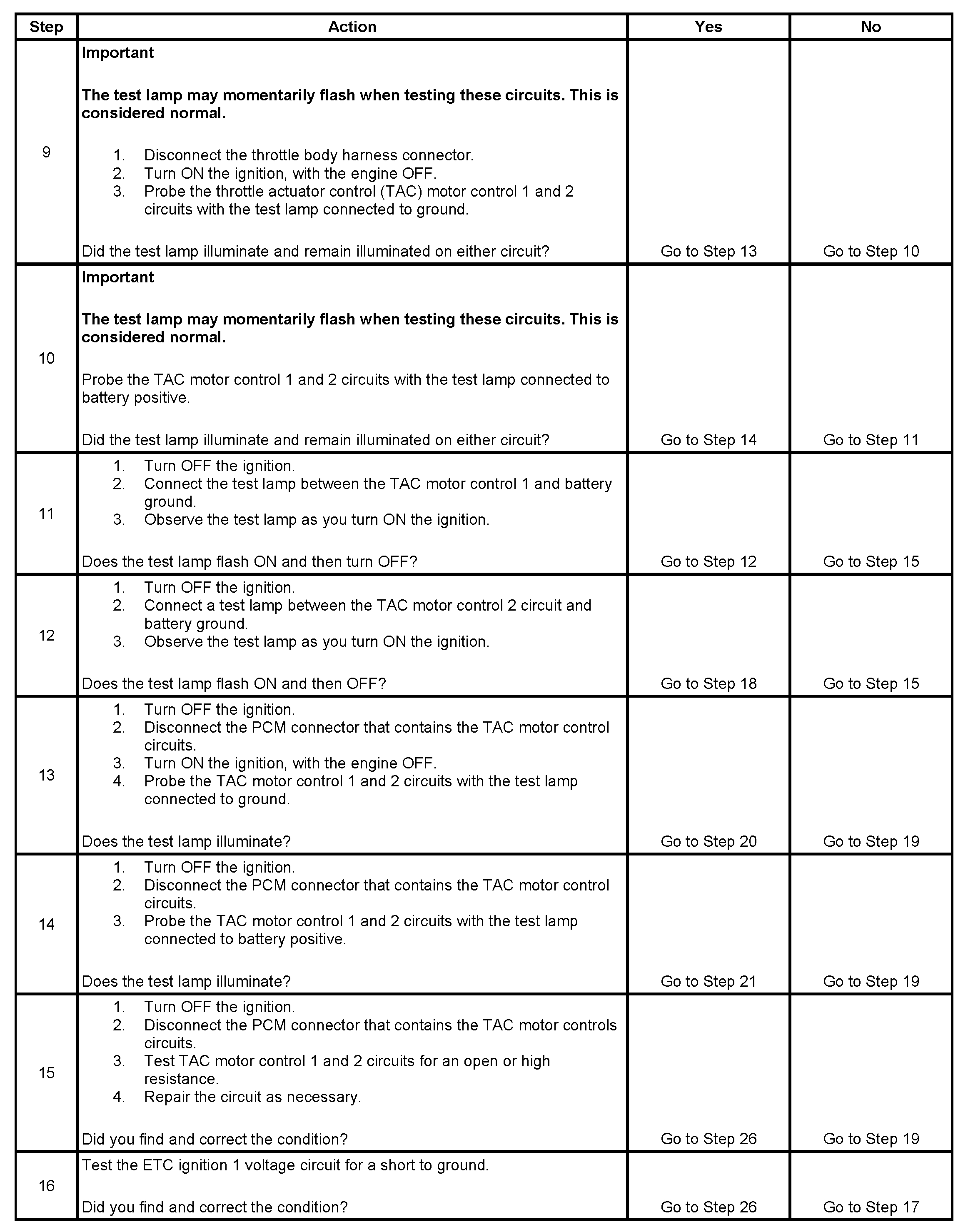 11. When the ignition is turned ON, the PCM operates the throttle control motor to verify the integrity of the system prior to start-up. This can be seen by the momentary flash of the test lamp as the ignition is turned ON.