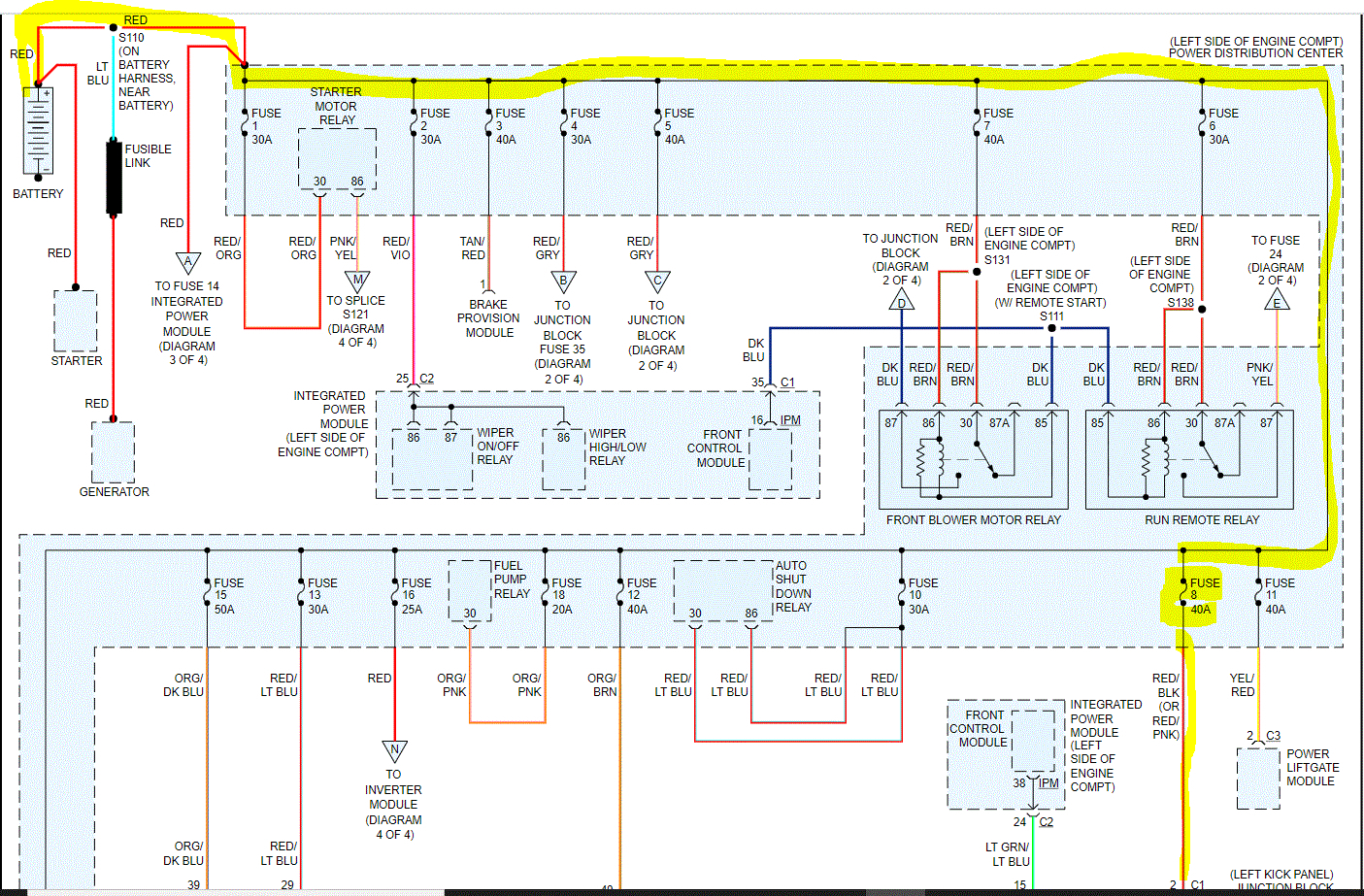 New battery, new starter new ignition. battery terminals cleaned..when you turn it over it ,all regular lights and functions work. But it will not start. There is no power going to the F8 wire. we don't know where the power comes from for that fuse.we have reset the factory alarm system that does not work either..you can use a wire and bypass the starter and it will start. Help!