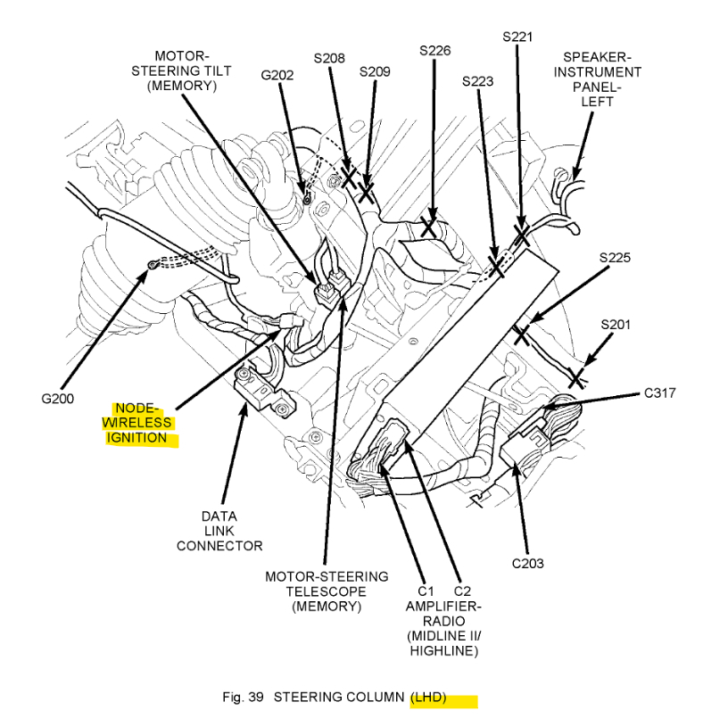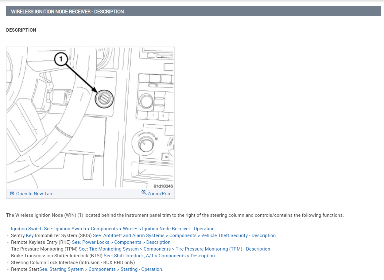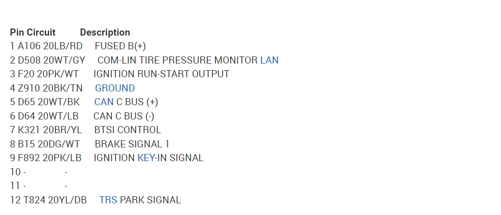Hello, service info on the wireless ignition module doesn't look completely correct, but here are the OEM wiring diagrams 1 and 2, and the connector pinout diagrams 3 and 4, then the win module location. The second to last diagram is another location diagram but it looks upside down for some reason, I added the network bus diagram as well, the pinout for the can bus C network pins look correct. Hope this helps some.