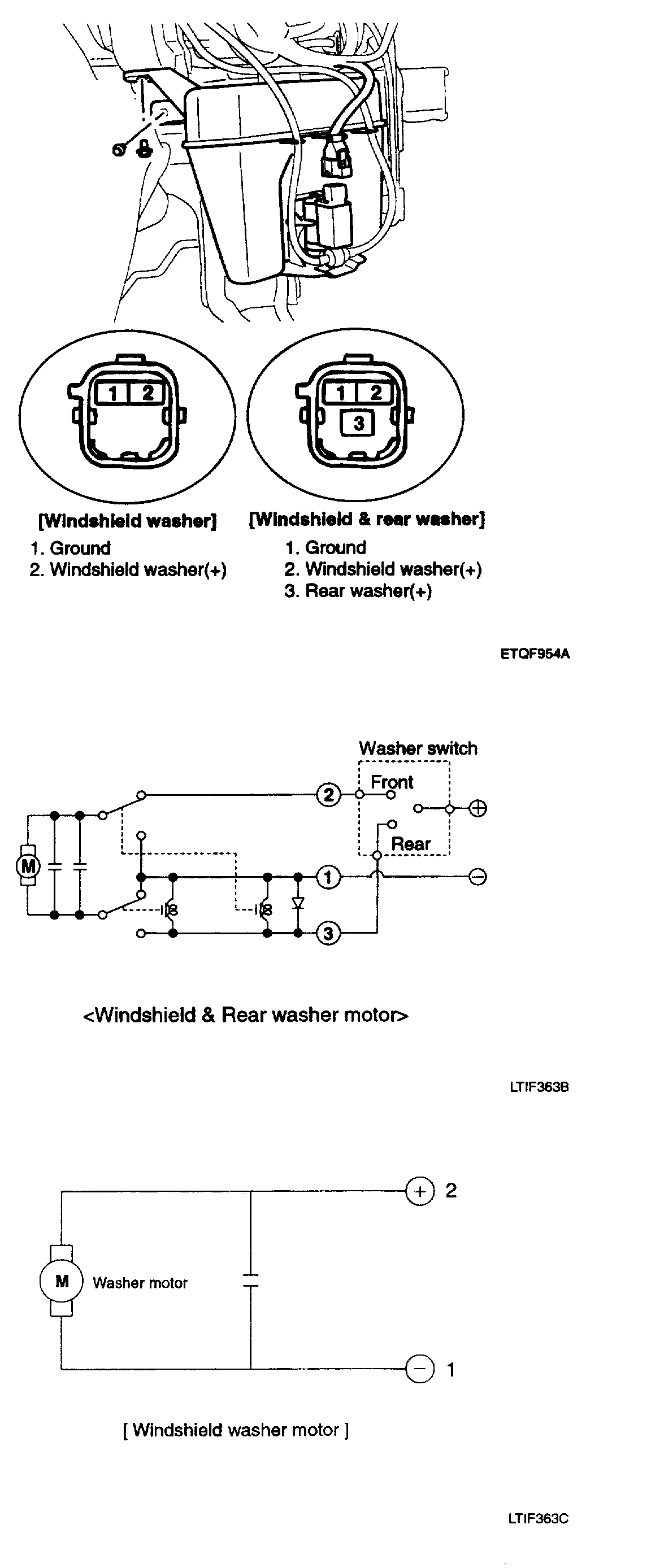 3. Check that the motor operates normally and the washer motor runs and water sprays from the front nozzles.
