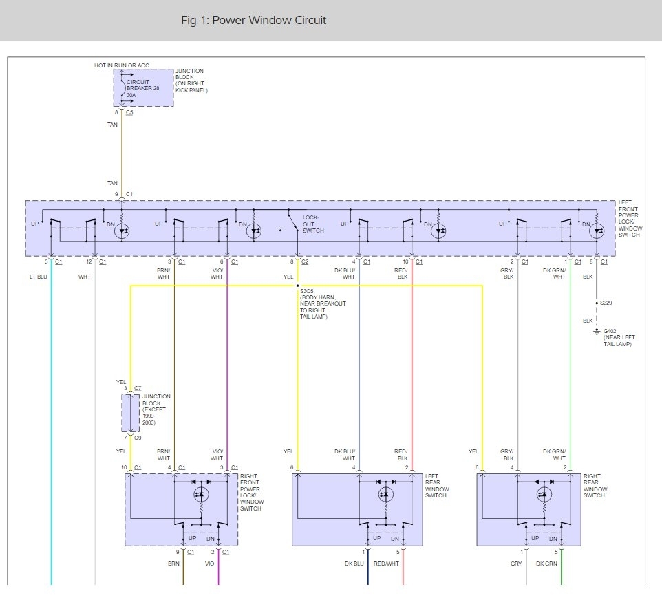The power windows and locks quit working on my vehicle. They do not work from there separate consoles or the drivers side console. I have check all wires leading into the doors and none are broken or stretching.