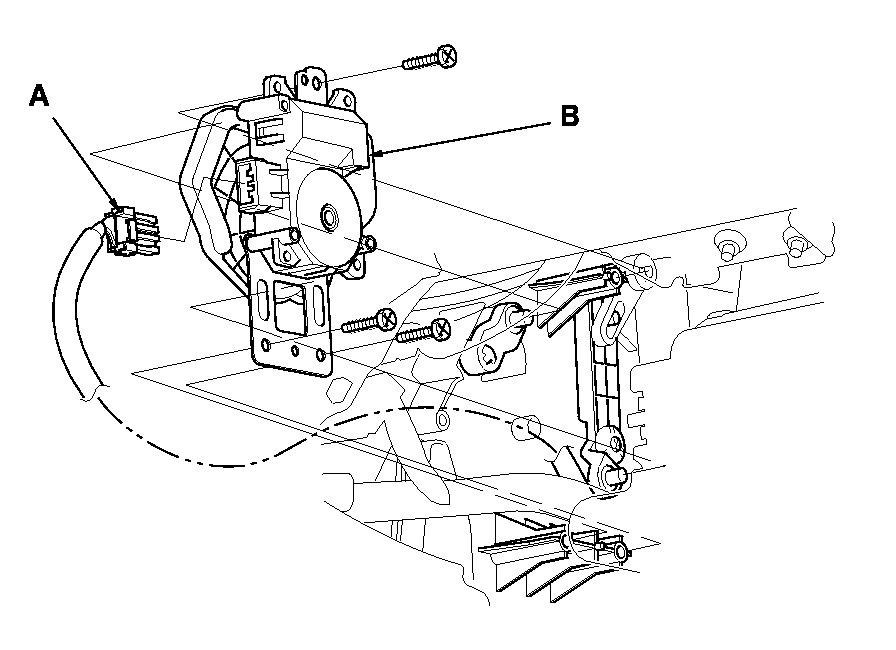 3. Disconnect the 7P connector (A) from the mode control motor (B). Remove the self-tapping screws and the mode control motor from the heater unit.