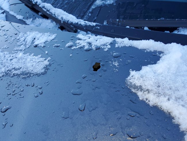 The picture below shows the open space where a button is supposed to be where the windshield washer exerts from to the windshield. Now, it only drips down to the hood of the car and to the ground. Is this an easy fix or is it complicated to fix.