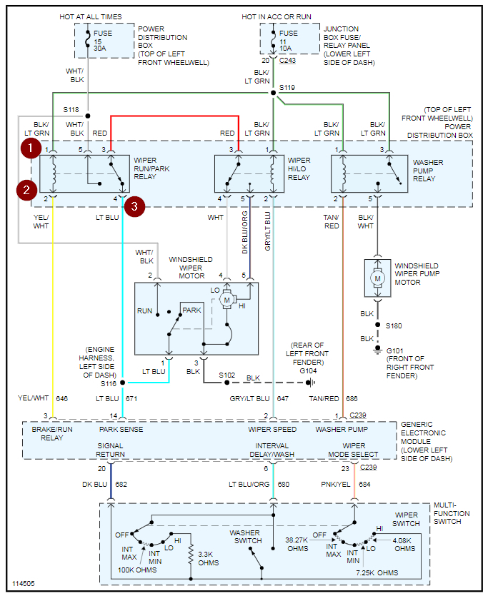 If this all checks out then you know the relay is getting grounded so jump number 1 to number 3. If the wipers come on your relay has failed.